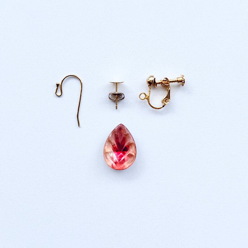 18×13mm/グラスストーン/1970年代ドイツ*リーフレッド(ドロップ)