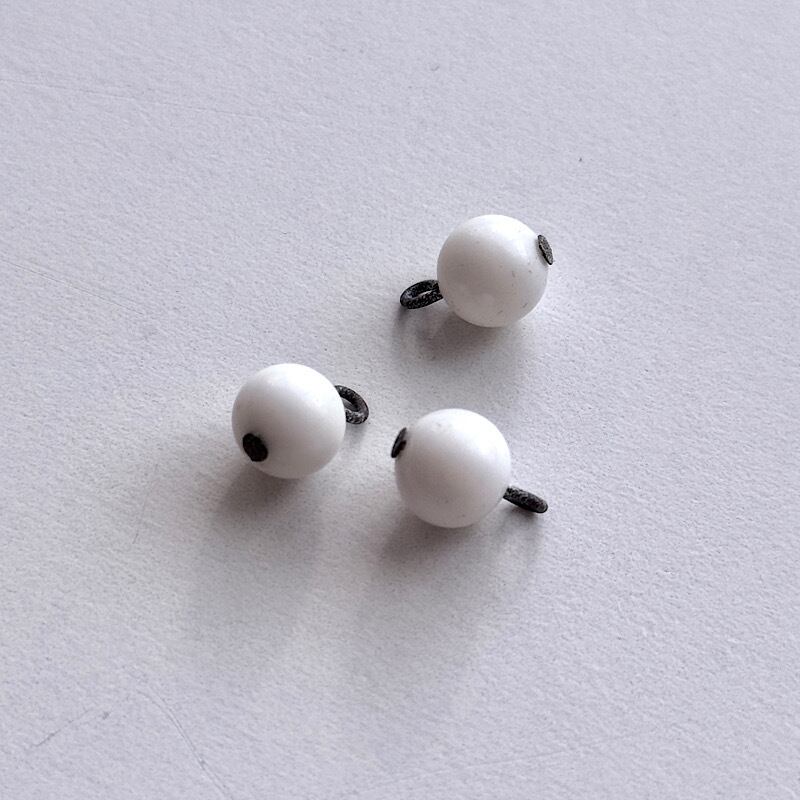 真っ白のつやっとした丸いガラスビーズはどこかレトロな趣。