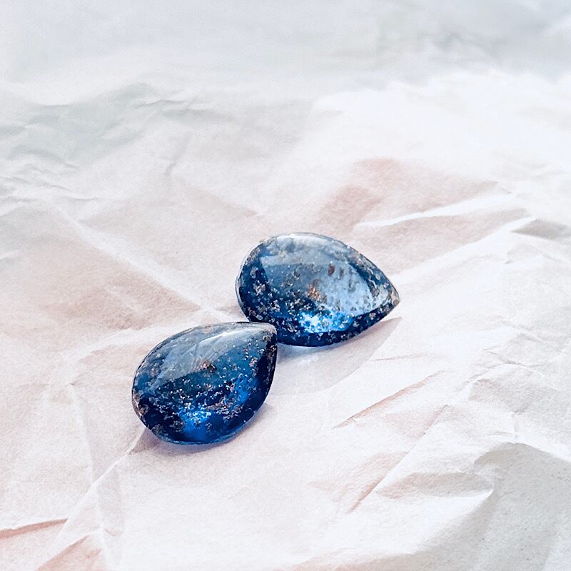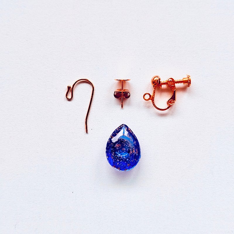 つるんとした表面の、鮮やかなブルーのガラスストーン。