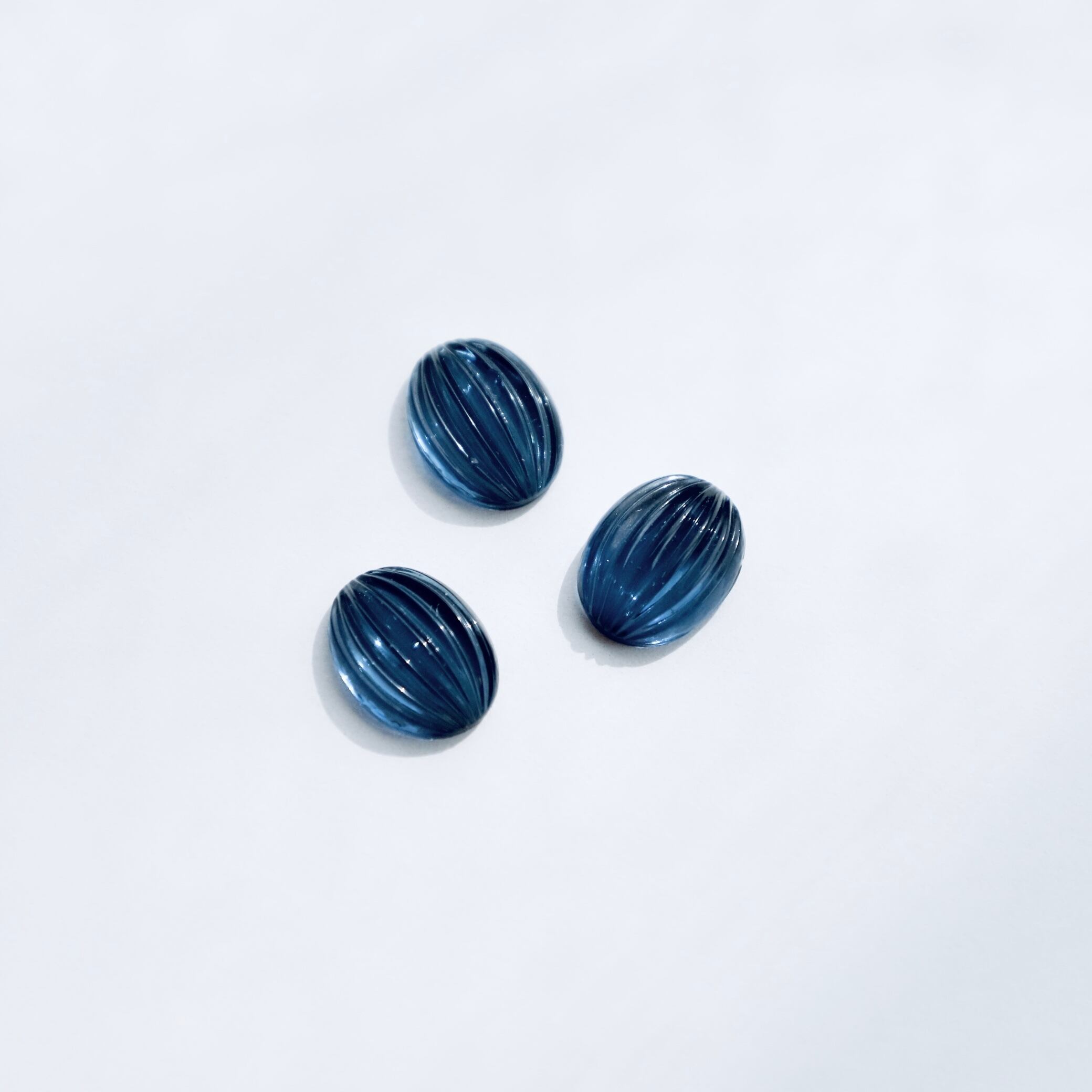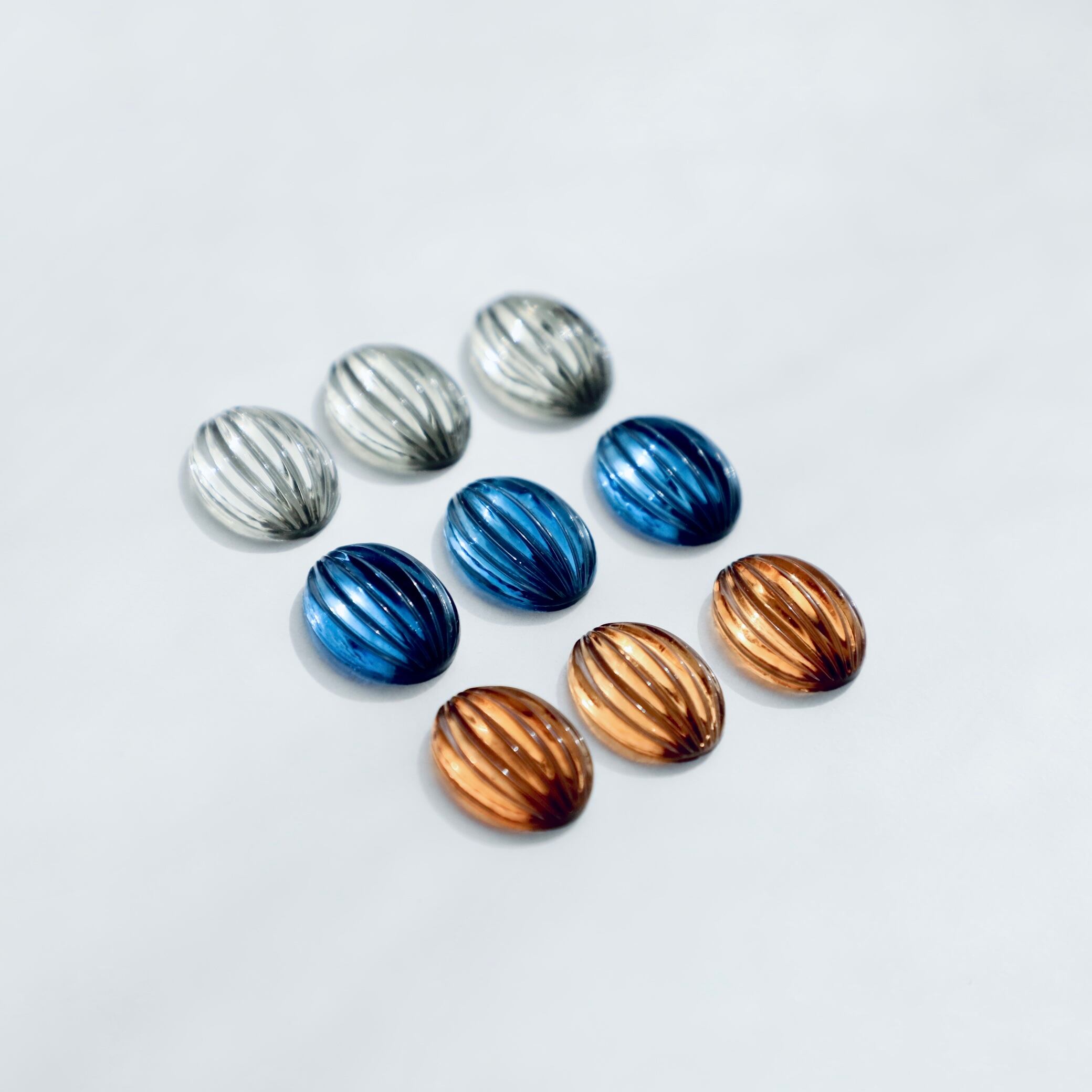オーバル形のリブ入り型で作られたガラスカボション。