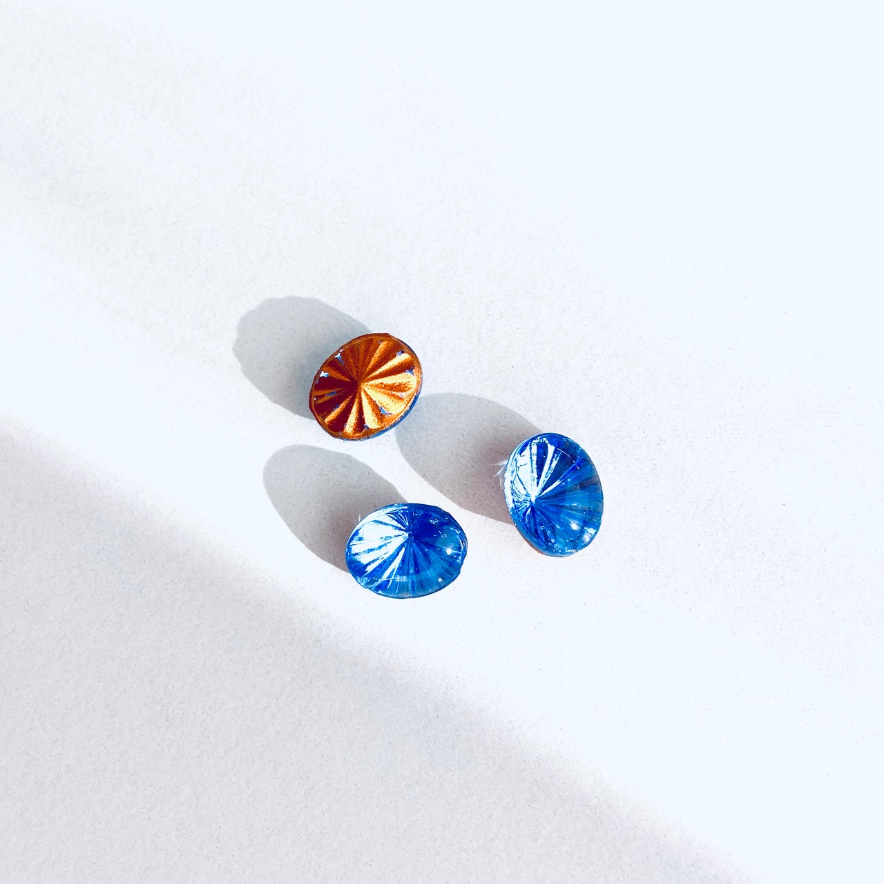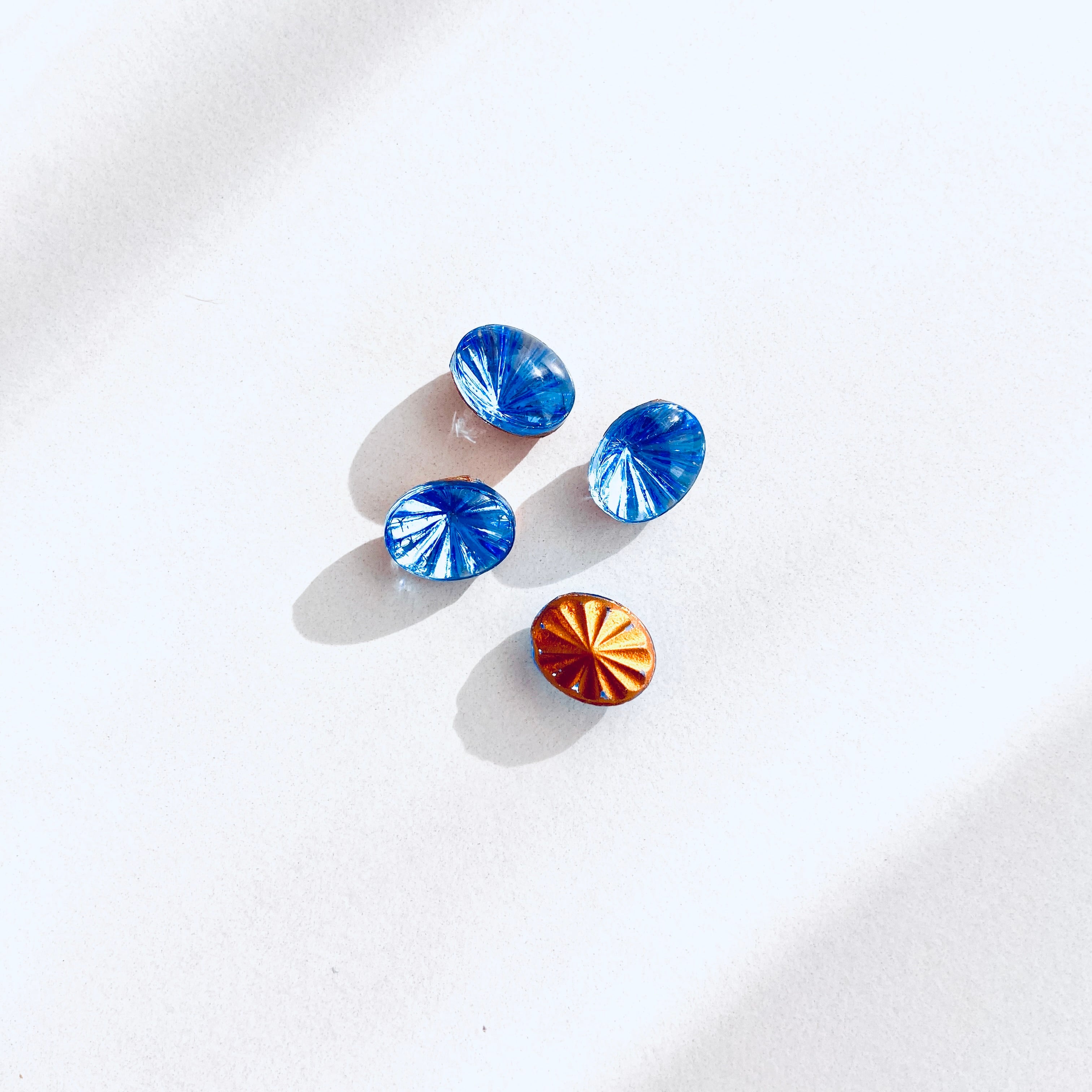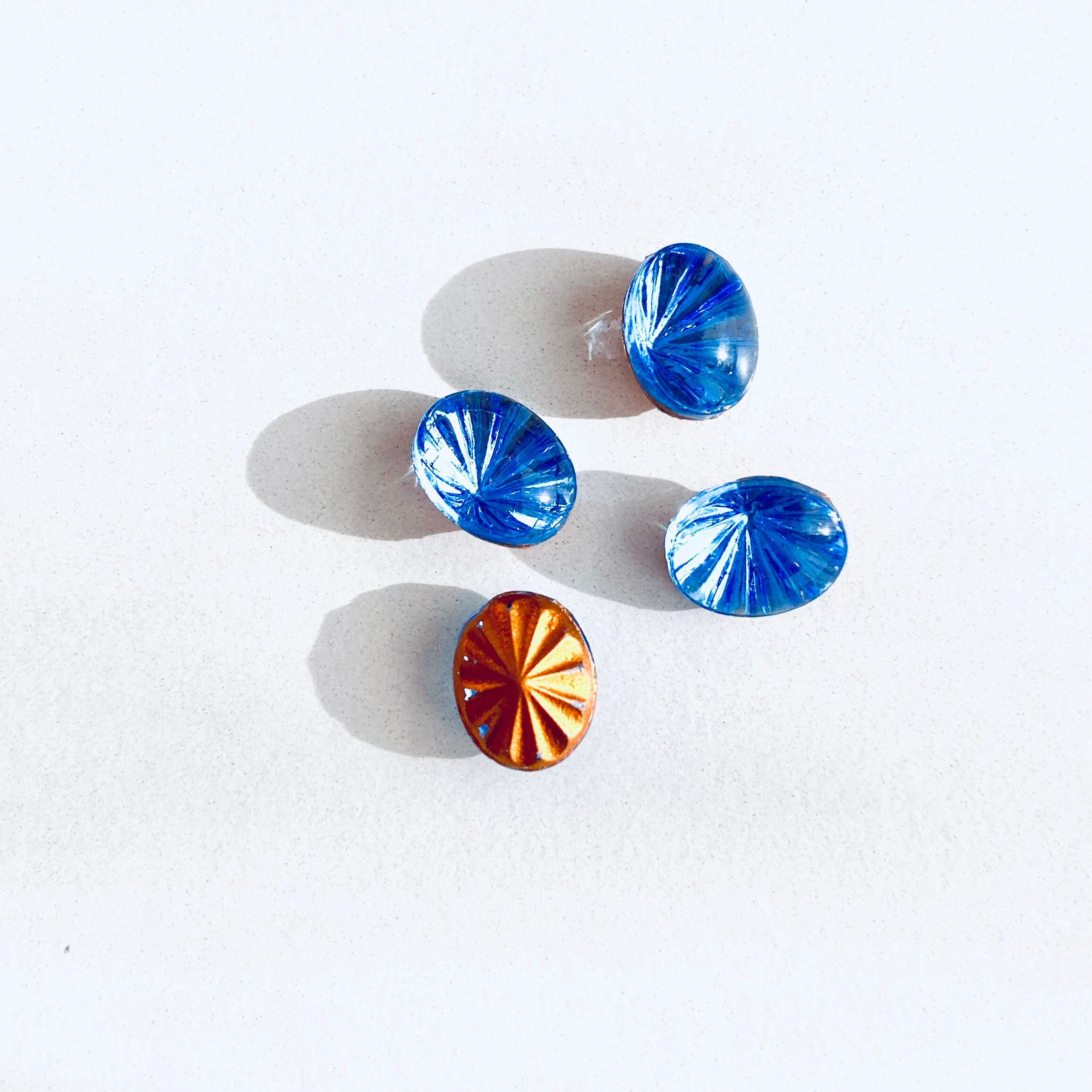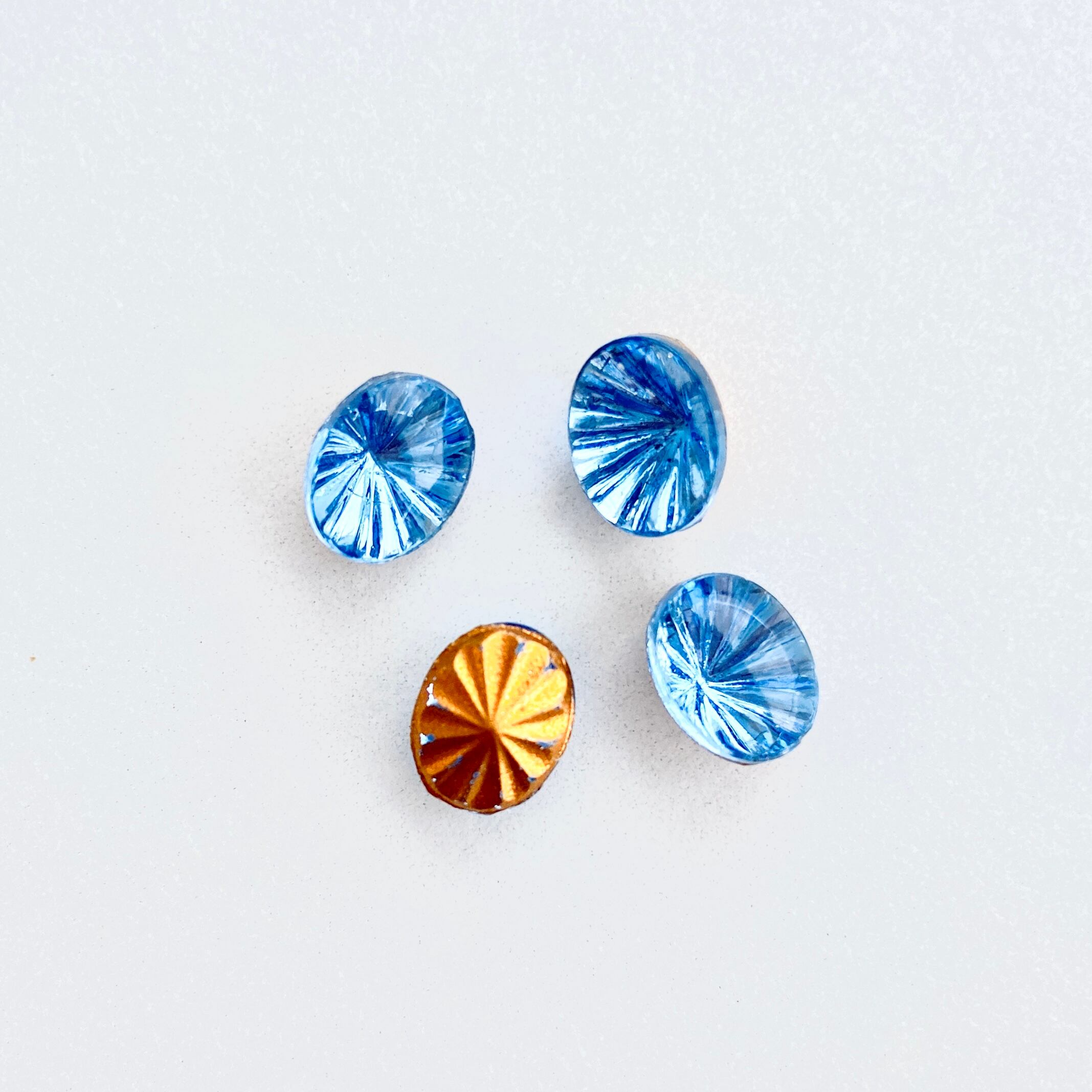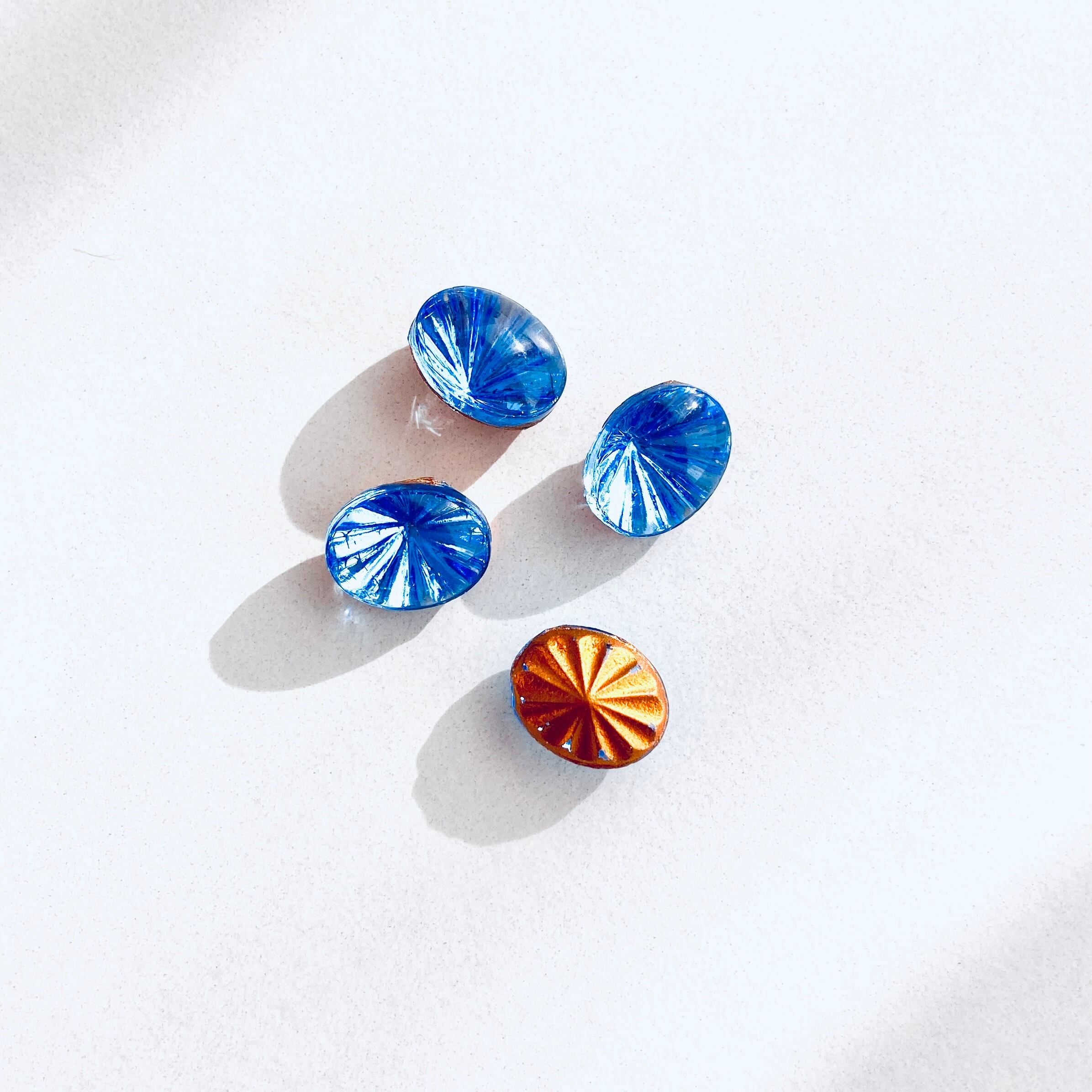 底面の放射状のエンボスが美しいガラスストーン。