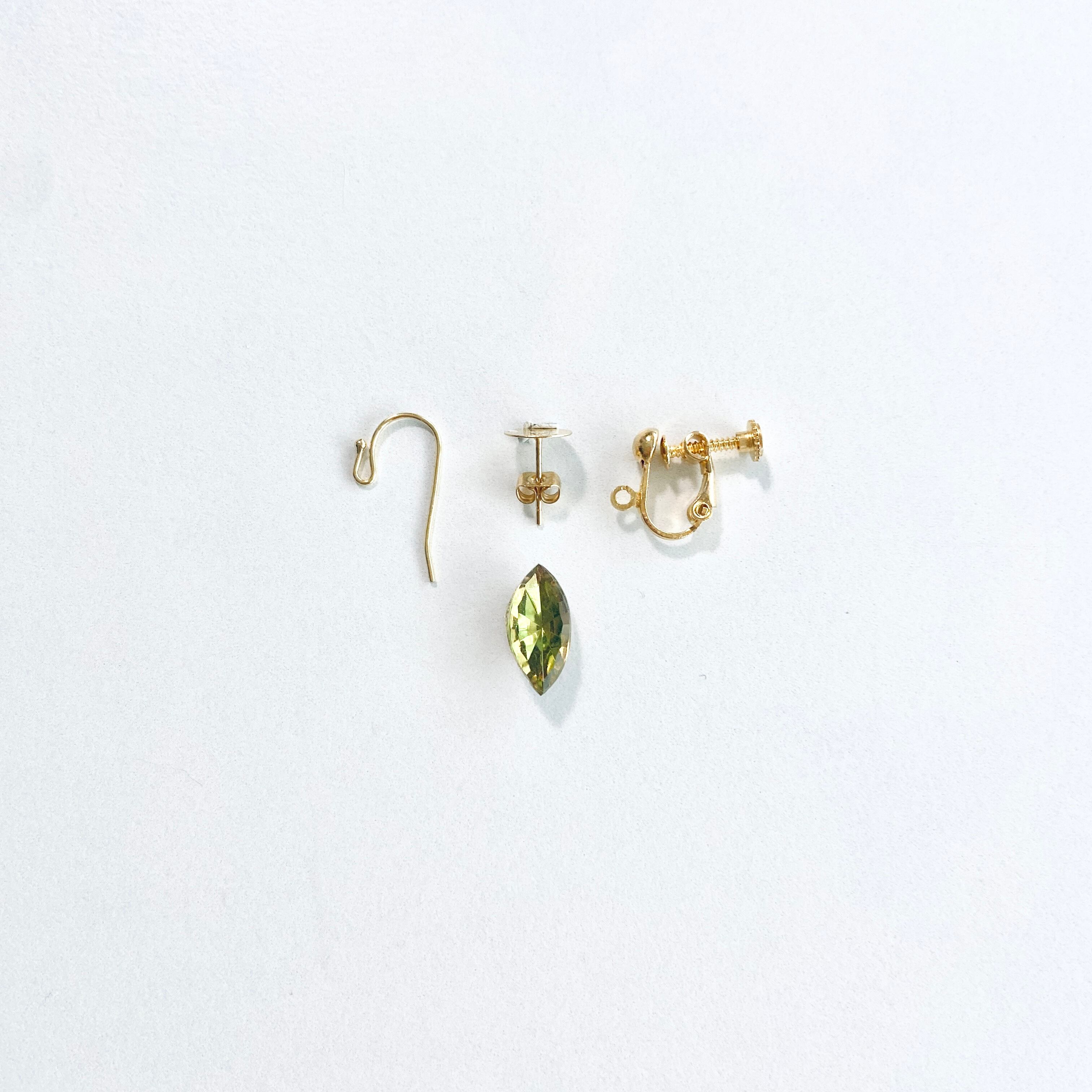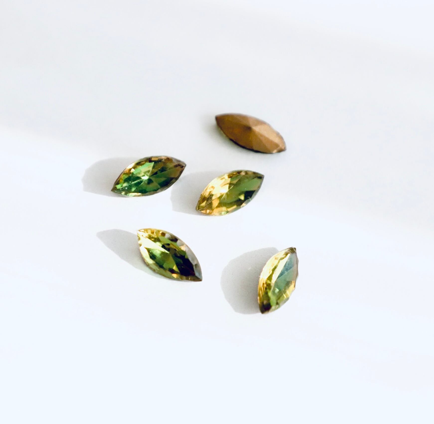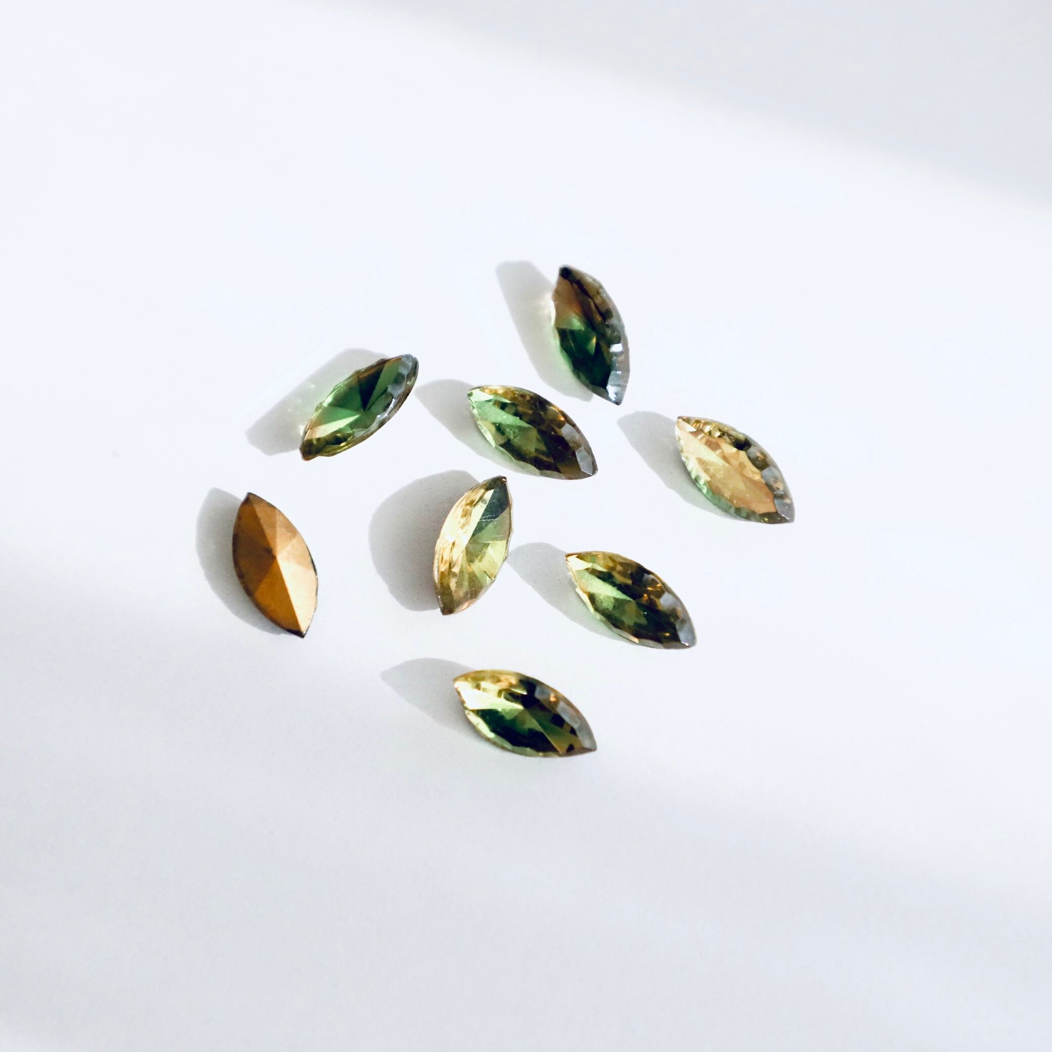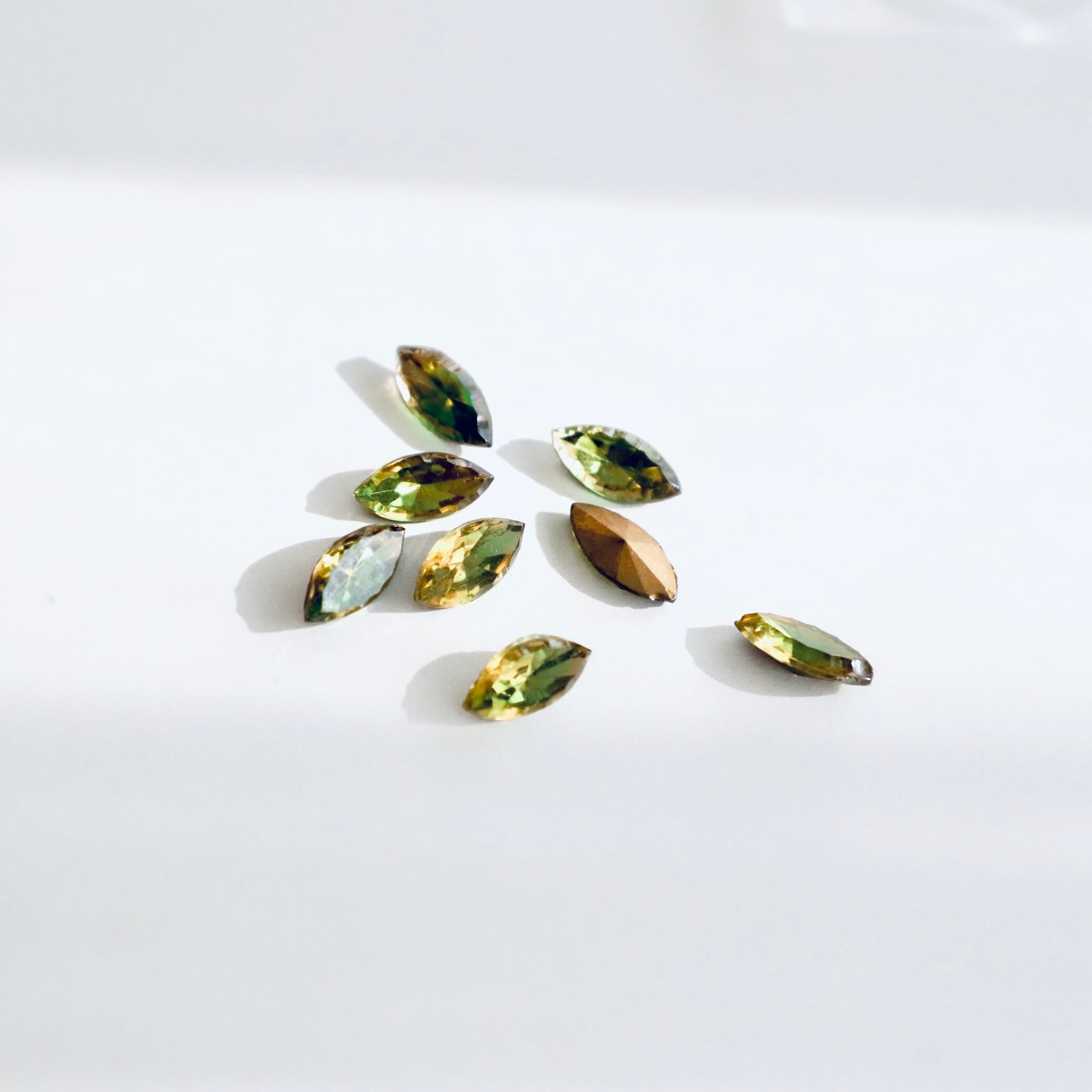 【再入荷】15×7mm/ドイツ製グラスストーン/*ゴールド×オリーブ*(ナベット/マーキーズ)