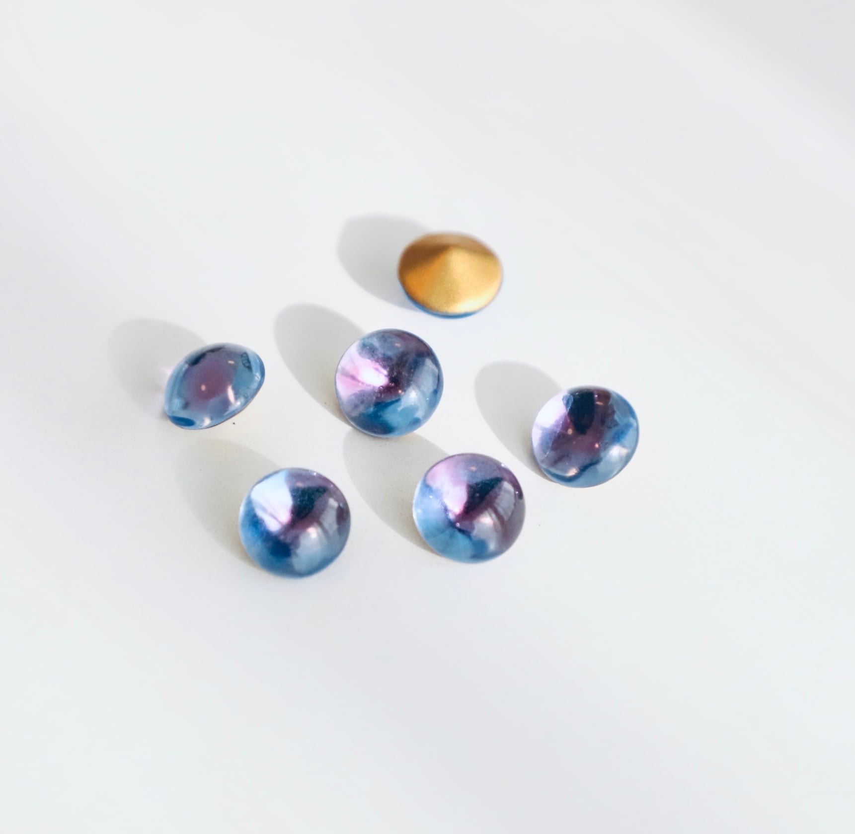 周囲は淡いブルー、中央にラベンダーカラーのグラデーションストーンです。