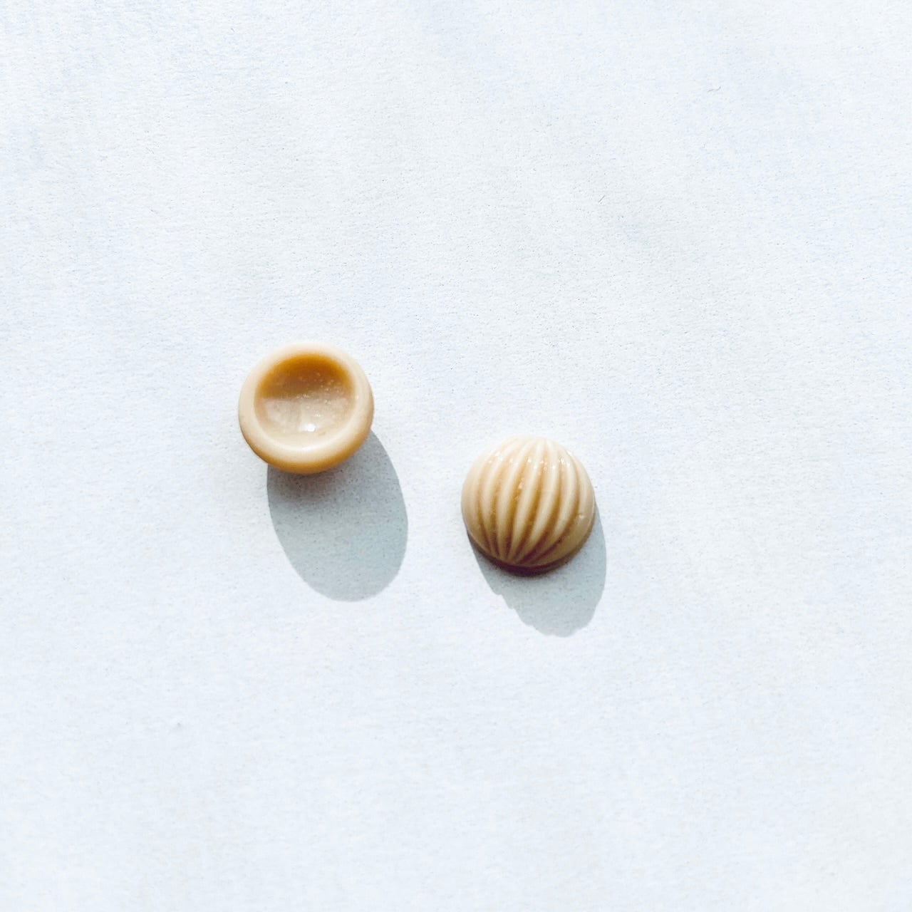 ガラス製、小ぶりでキッチュなかわいさのあるカボションです。
