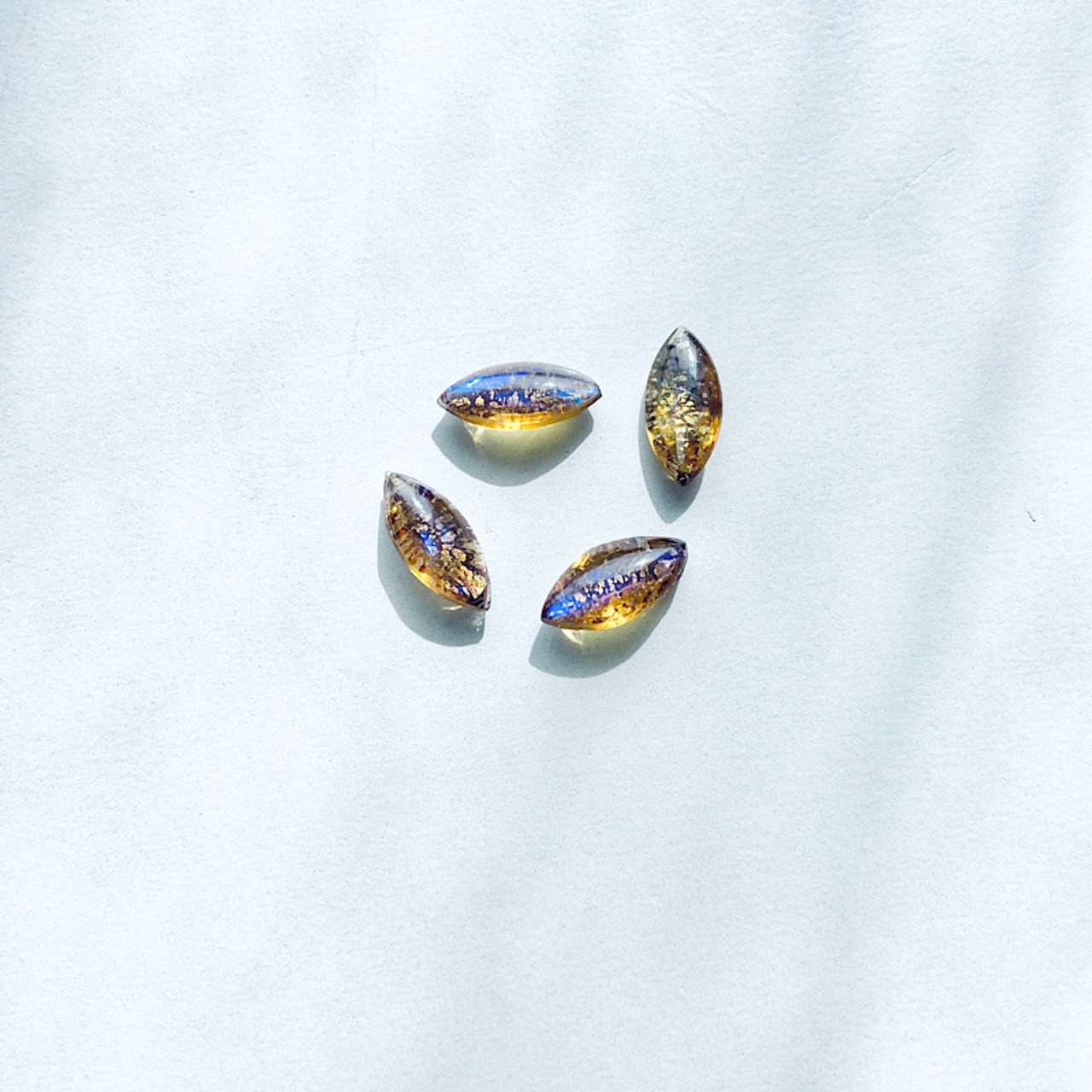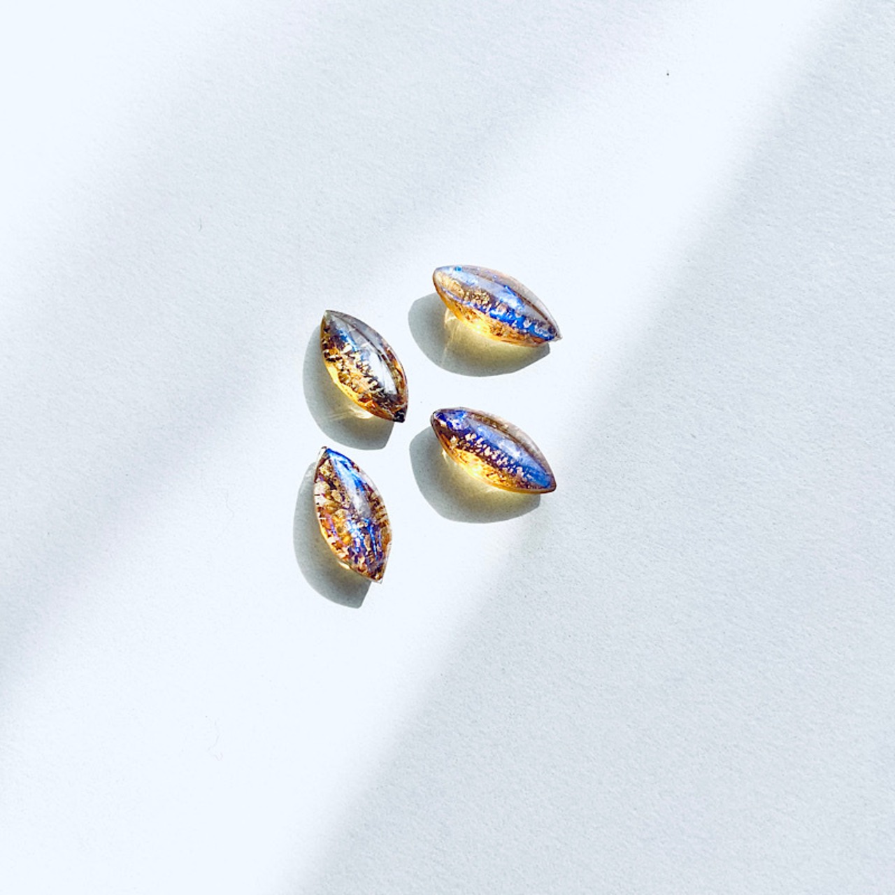 15×7mm/ドラゴンズブレスグラスストーン/*ゴールド×ブルー*(ナベット/マーキーズ)