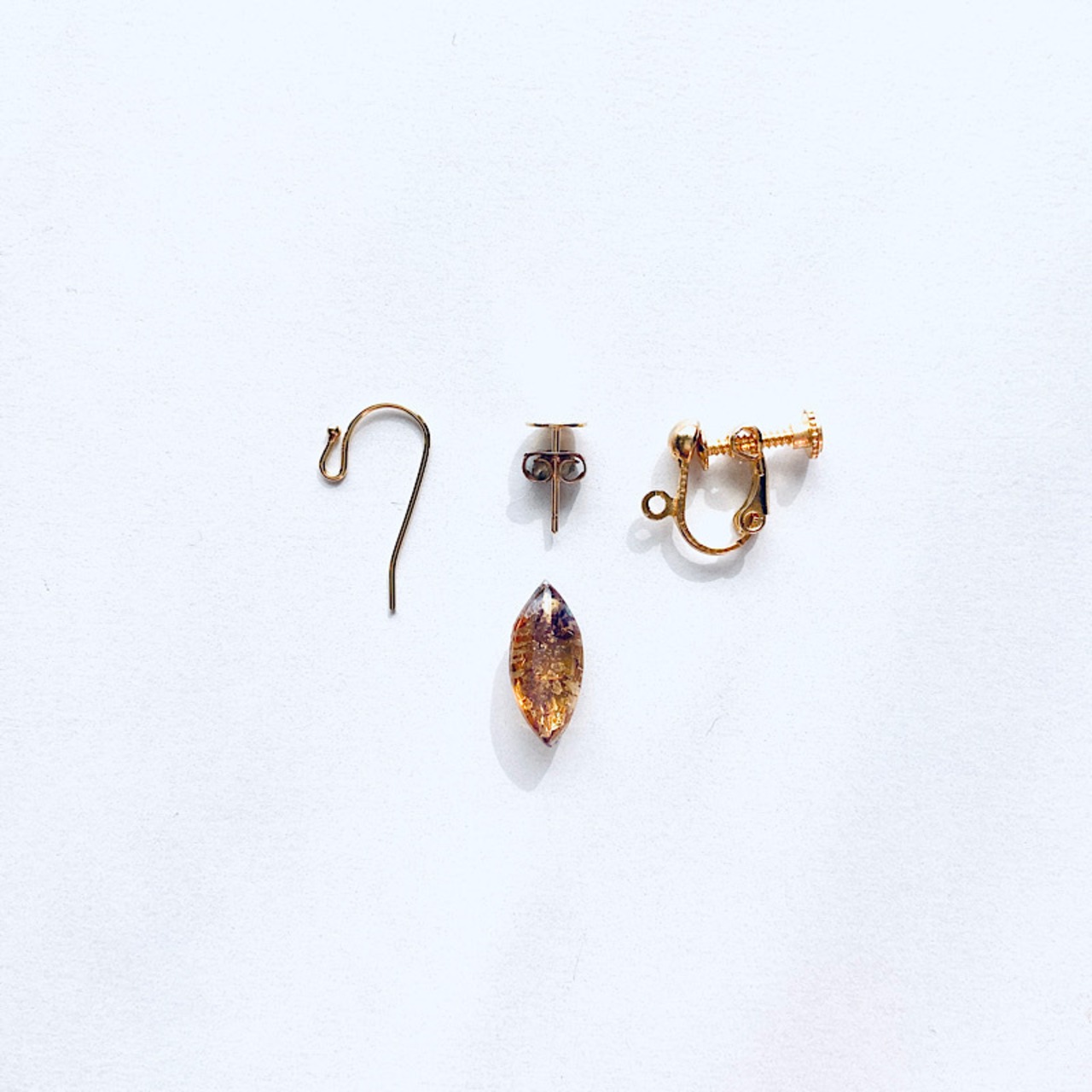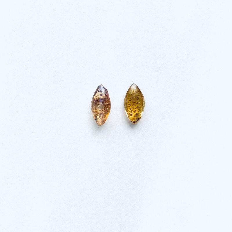 飴色のつるんとしたナベットグラスストーン。内部には細かい箔が見えます。