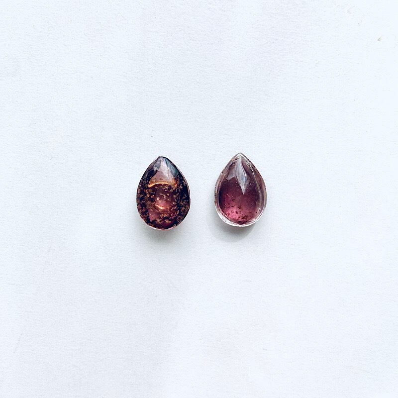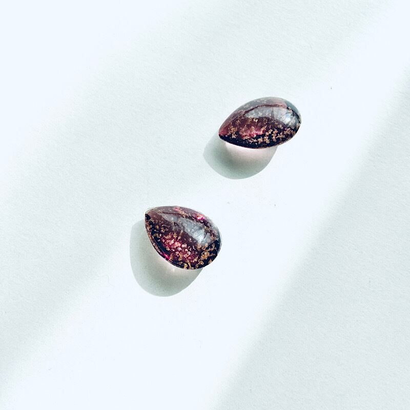つるんとした表面の、レッドグレープのような色味のガラスストーン。